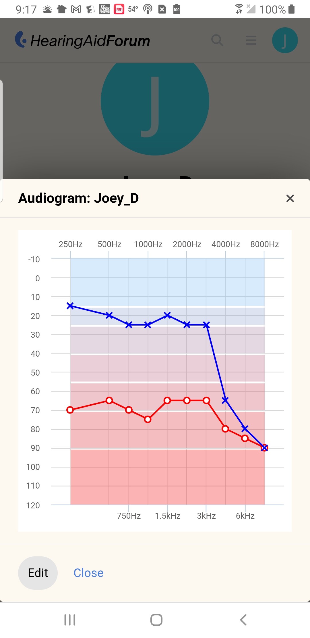 Hello. I have about the same issue you. But I had a accident and then a infection in my right ear. The right is is basically toast. See my audiogram. I have had three pairs of HAs since 2013 . Due to damage in my right ear. I only hear noise in the right ear Not the same sounds as my left ear. Making it impossible to stream music in stereo. Ok in mono.