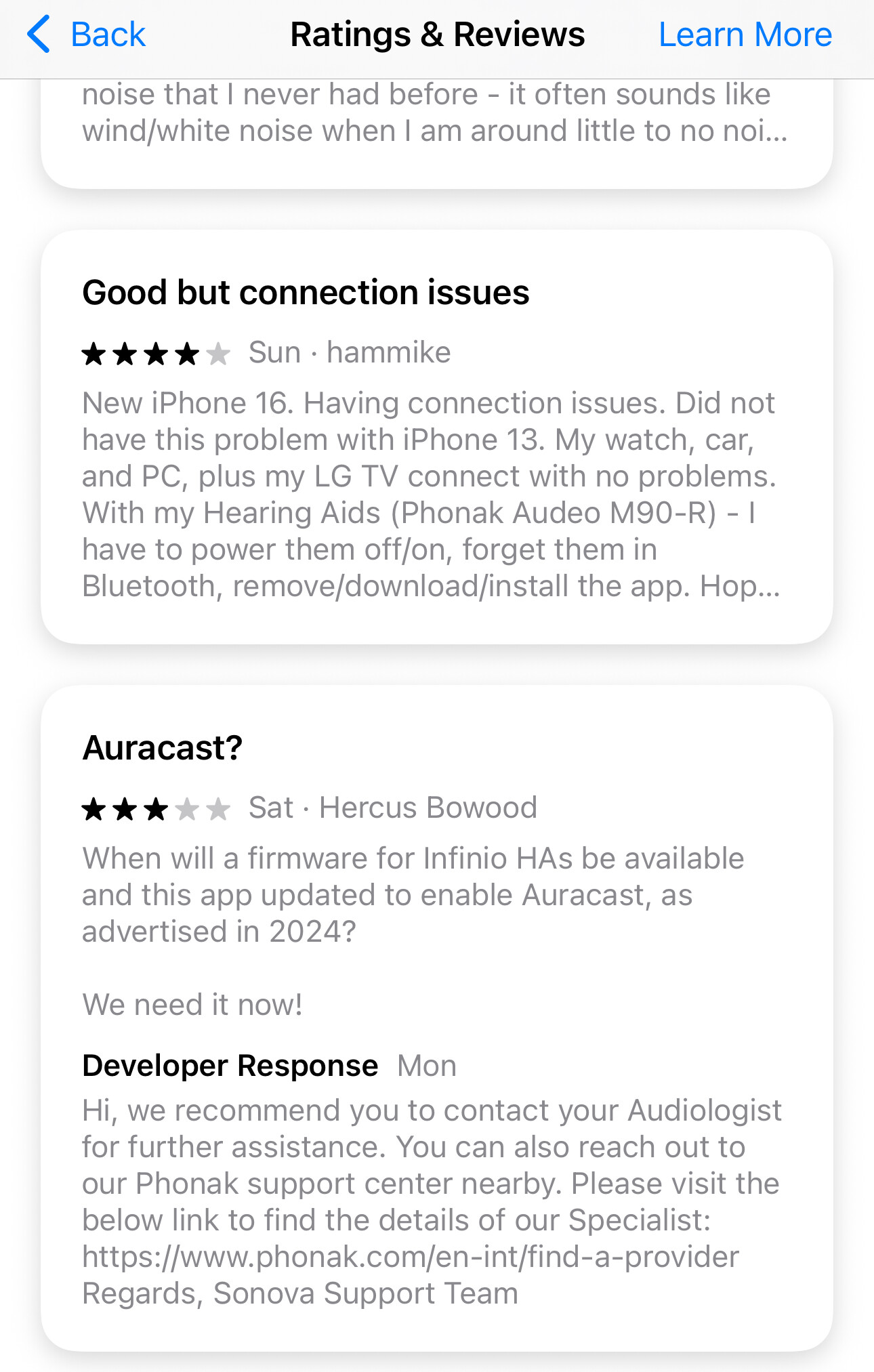 Maybe one of the advantages of putting the feedback on the myPhonak app review area is that Phonak can judge how many people are interested in it. And so can we. It also only takes a couple of minutes.